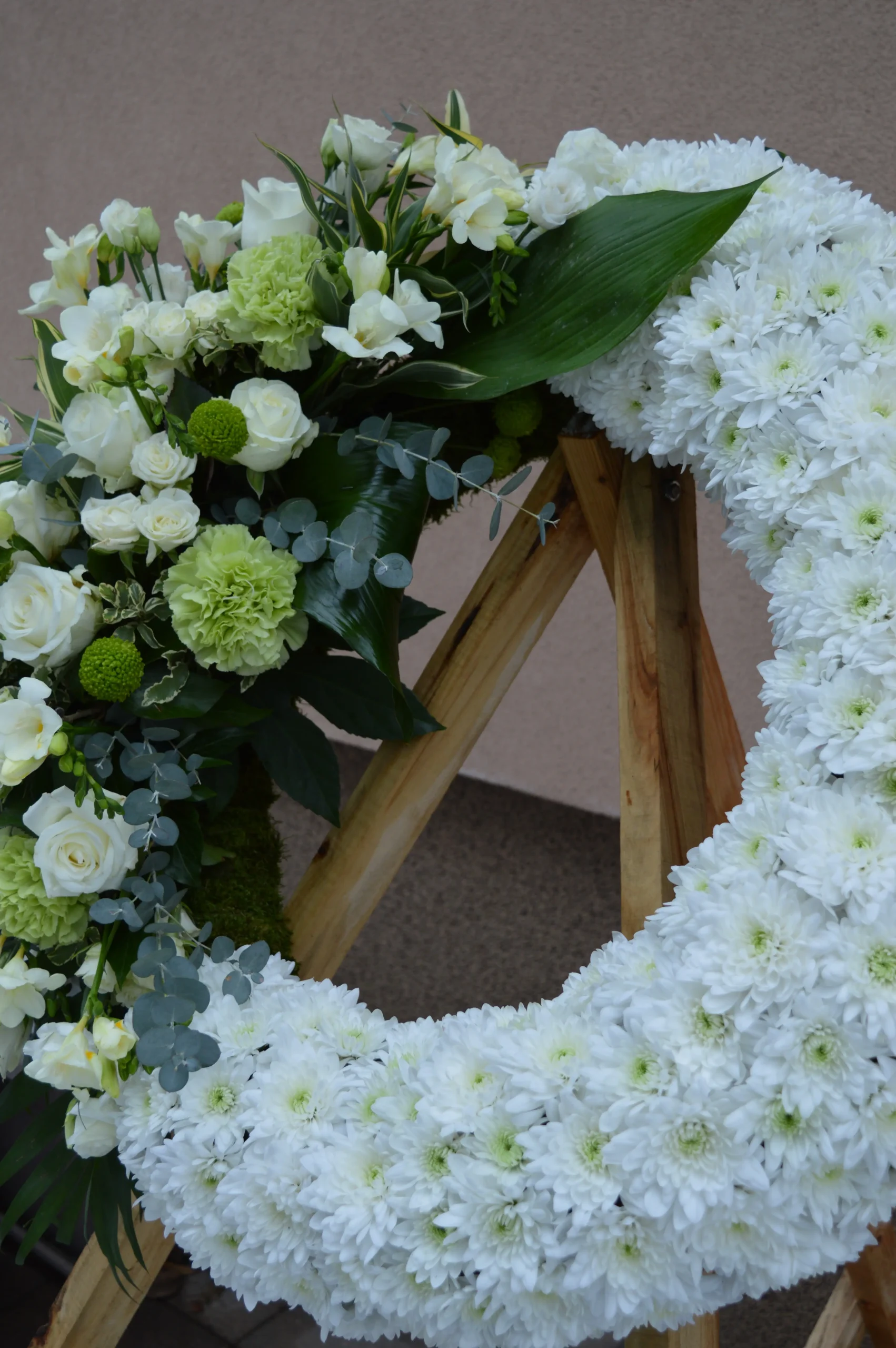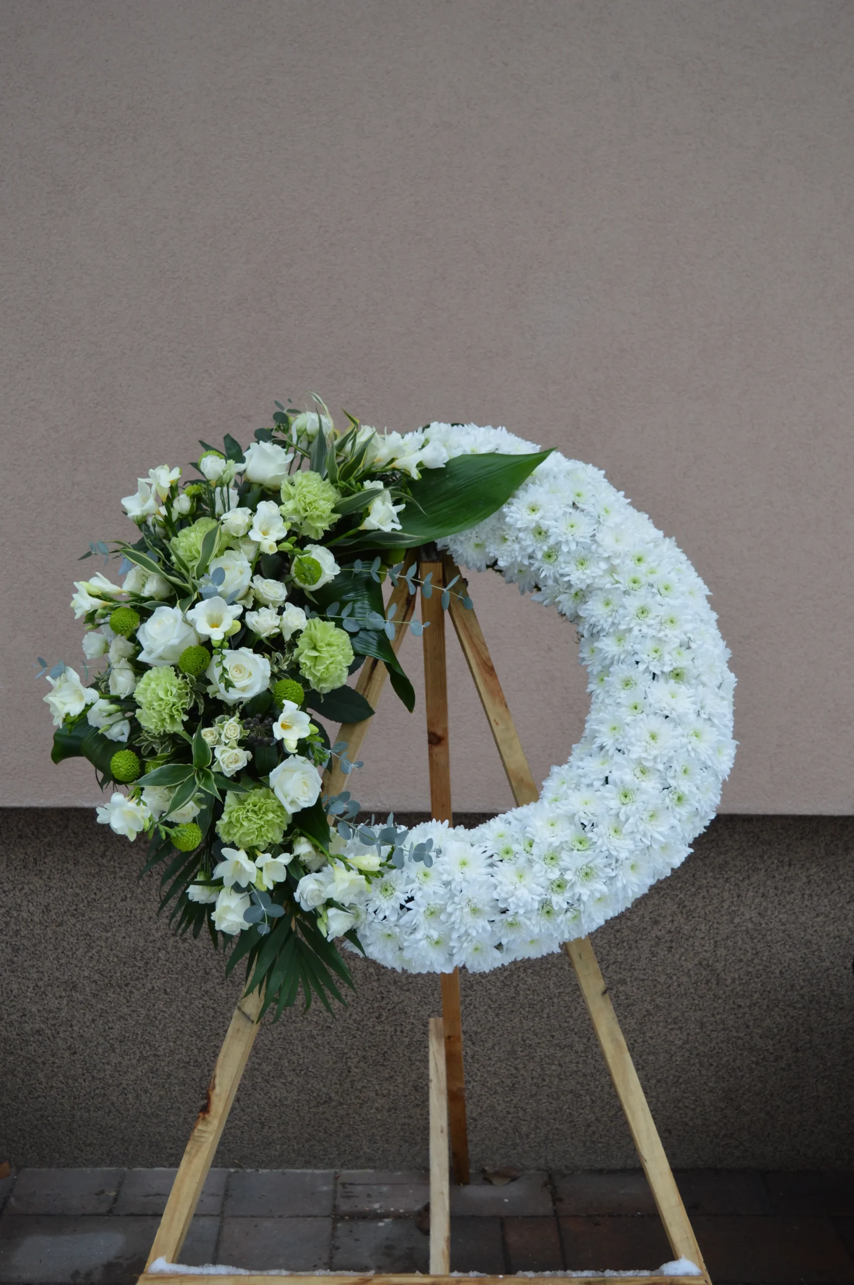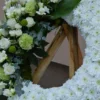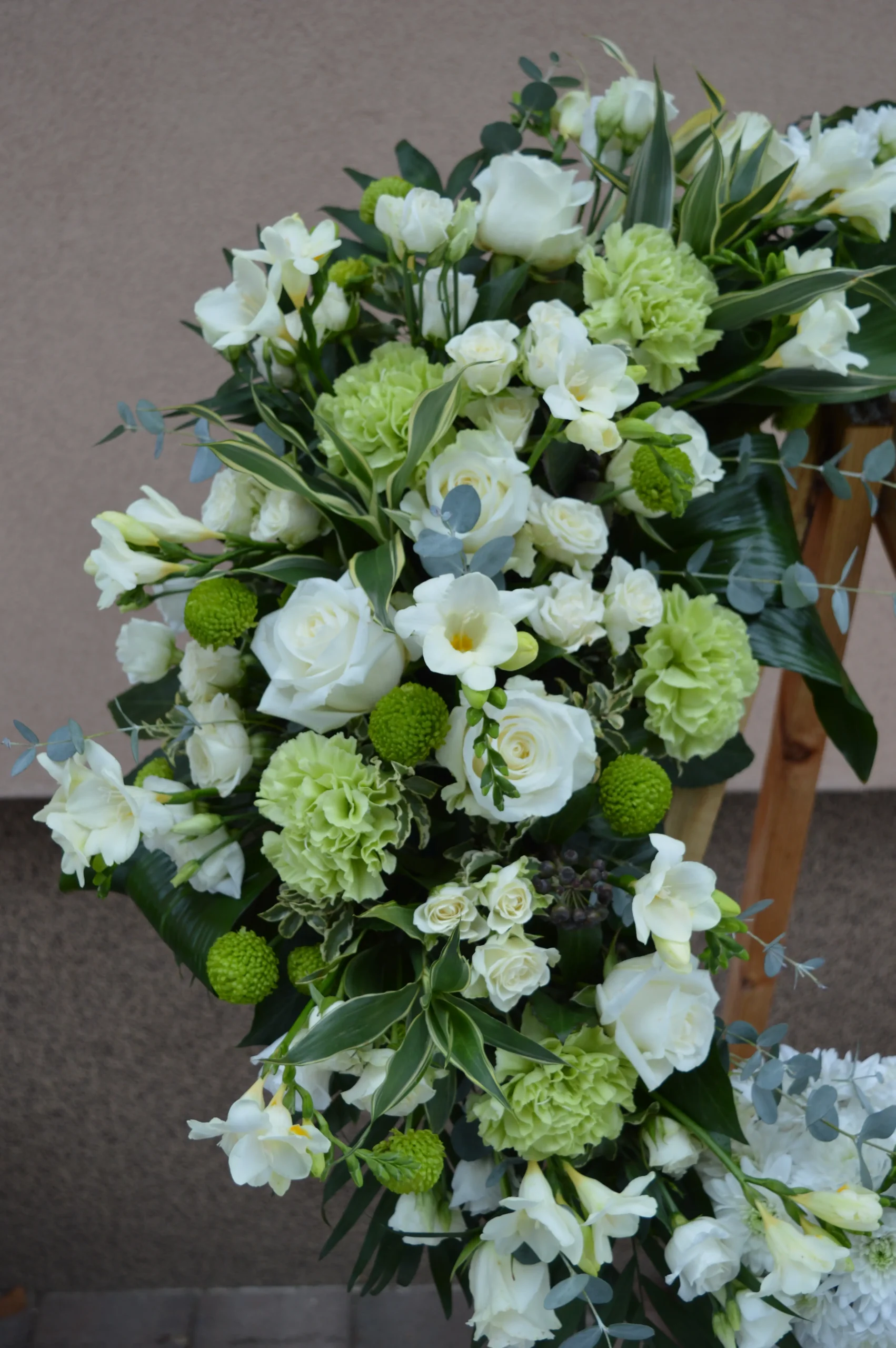 A Békés Nyugalom – görög koszorú tiszta és méltóságteljes választás, amely csendes szeretettel és nyugalmat sugárzó eleganciával fejezi ki az örök emlékezést.