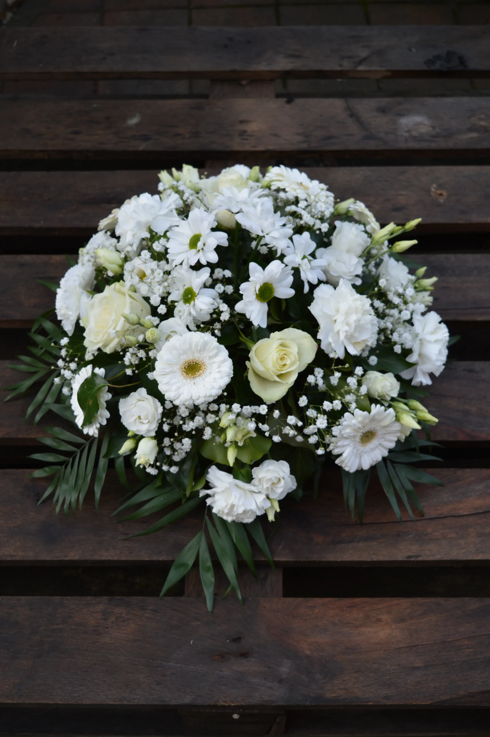 A Csendes Emlékezés – dombkoszorú a tisztaság, a béke és az időtlen emlékezés jelképe. Tömör, harmonikus formája stabil és elegáns megjelenést biztosít a búcsú szertartásán. Ez a dombkoszorú nem csupán virágdísz, hanem szimbolikus üzenet is: a szeretet nem múlik el, csak csendesebb formában él tovább bennünk. Méltó és visszafogott választás egy tiszteletteljes búcsúhoz.
