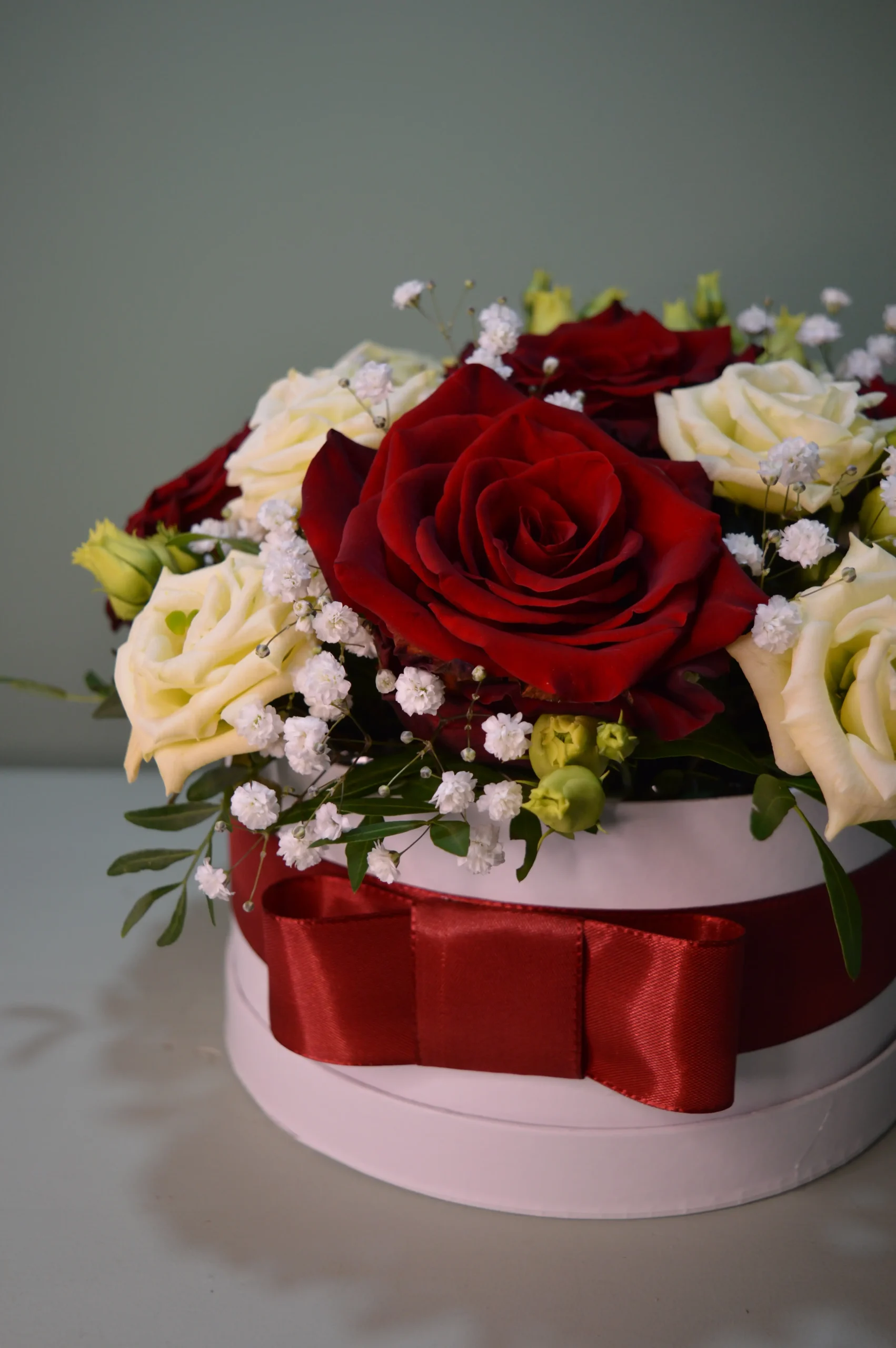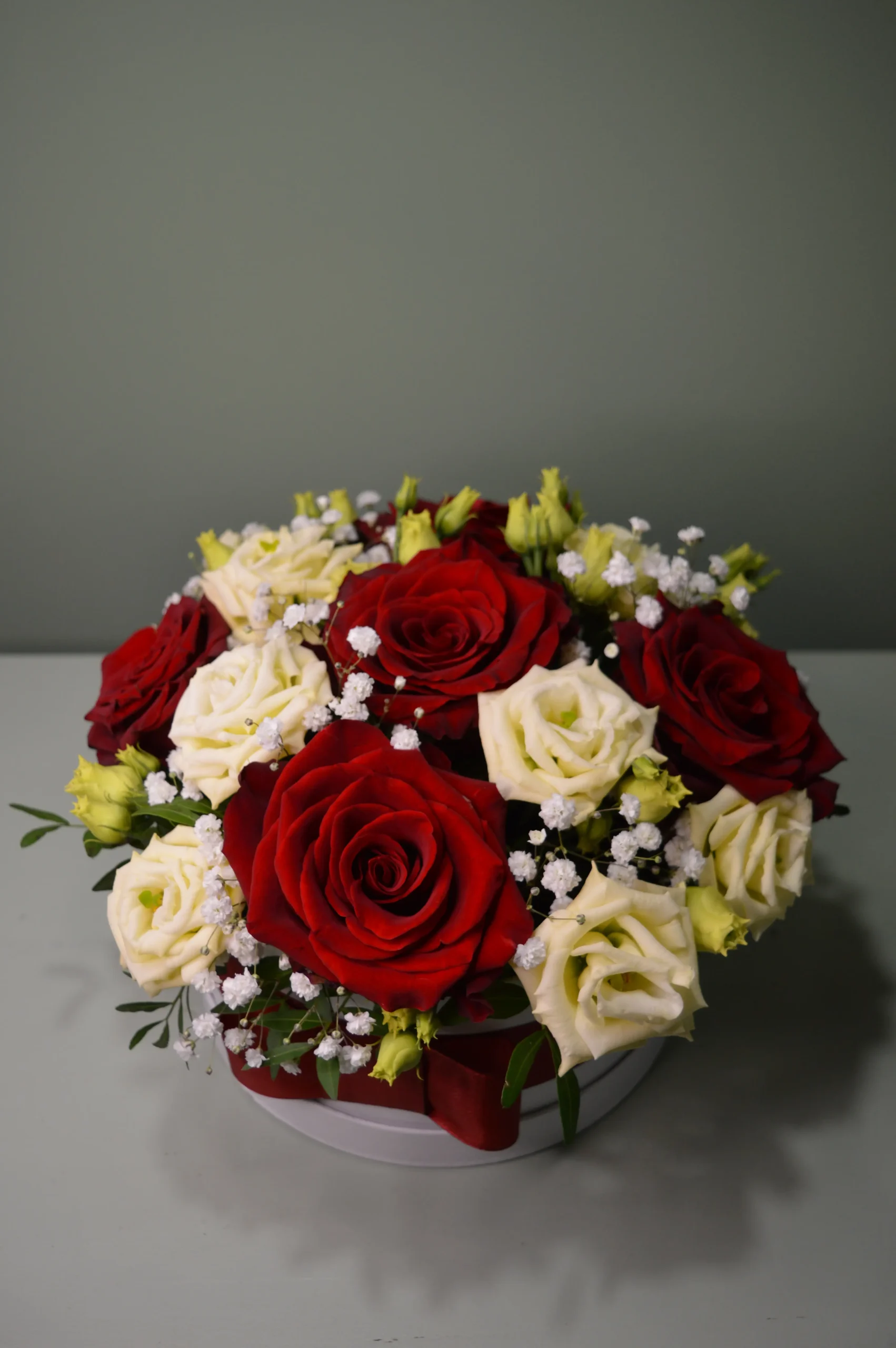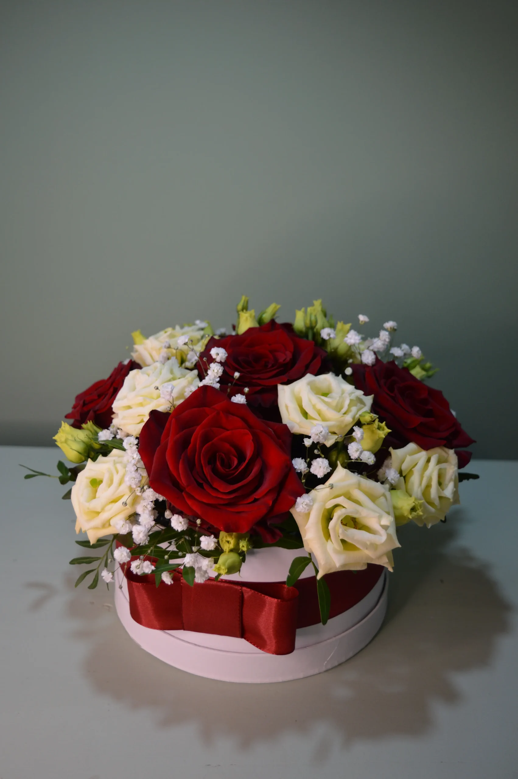 A Gyengéd érintés rózsabox-ot szeretettel készítjük azoknak, akik egy igazán szívhez szóló ajándékkal szeretnék meglepni szeretteiket. A mélyvörös és krémszínű rózsák harmonikus párosítása klasszikus eleganciát idézi meg, miközben meleg, meghitt hangulatot teremt.