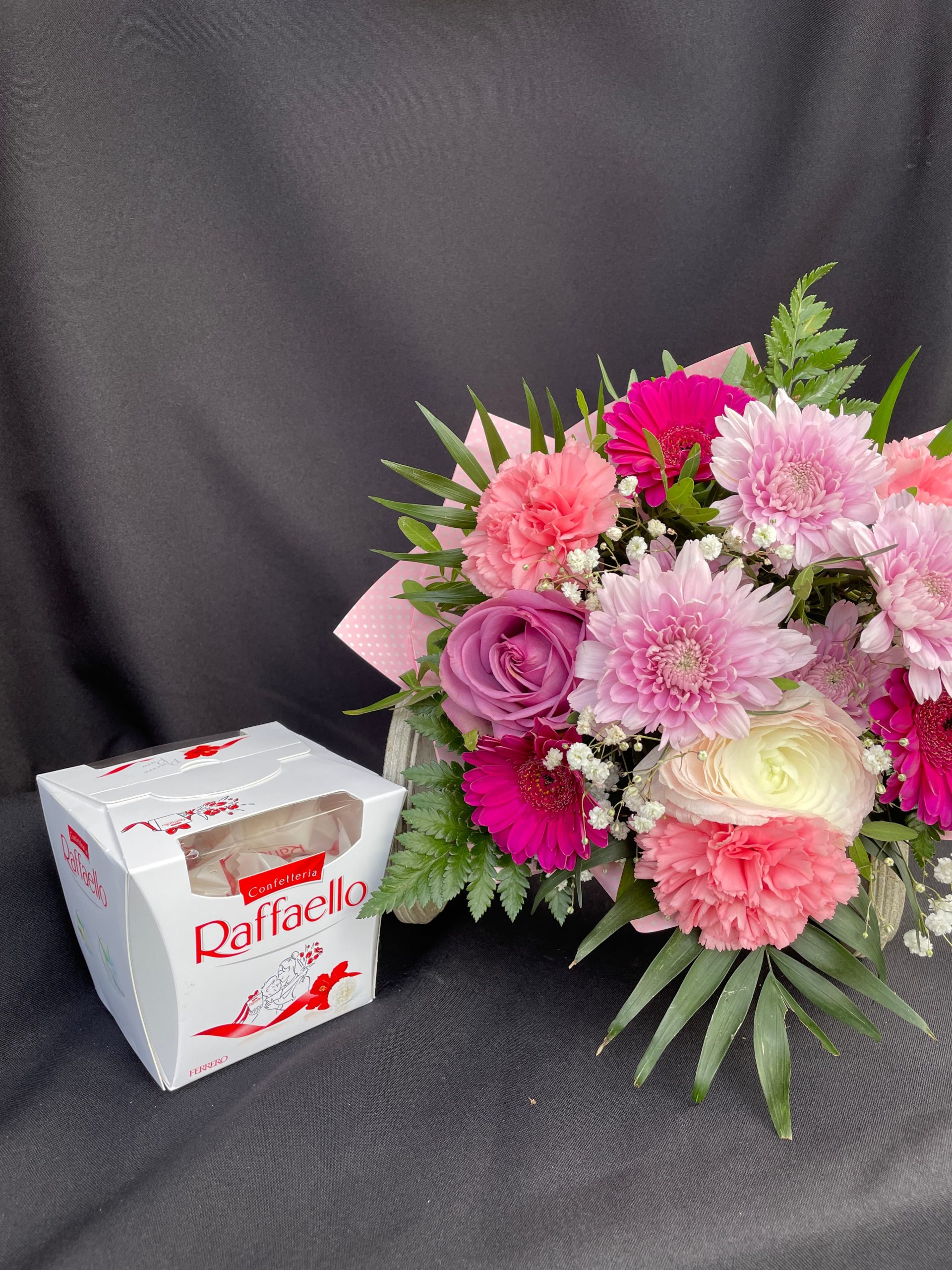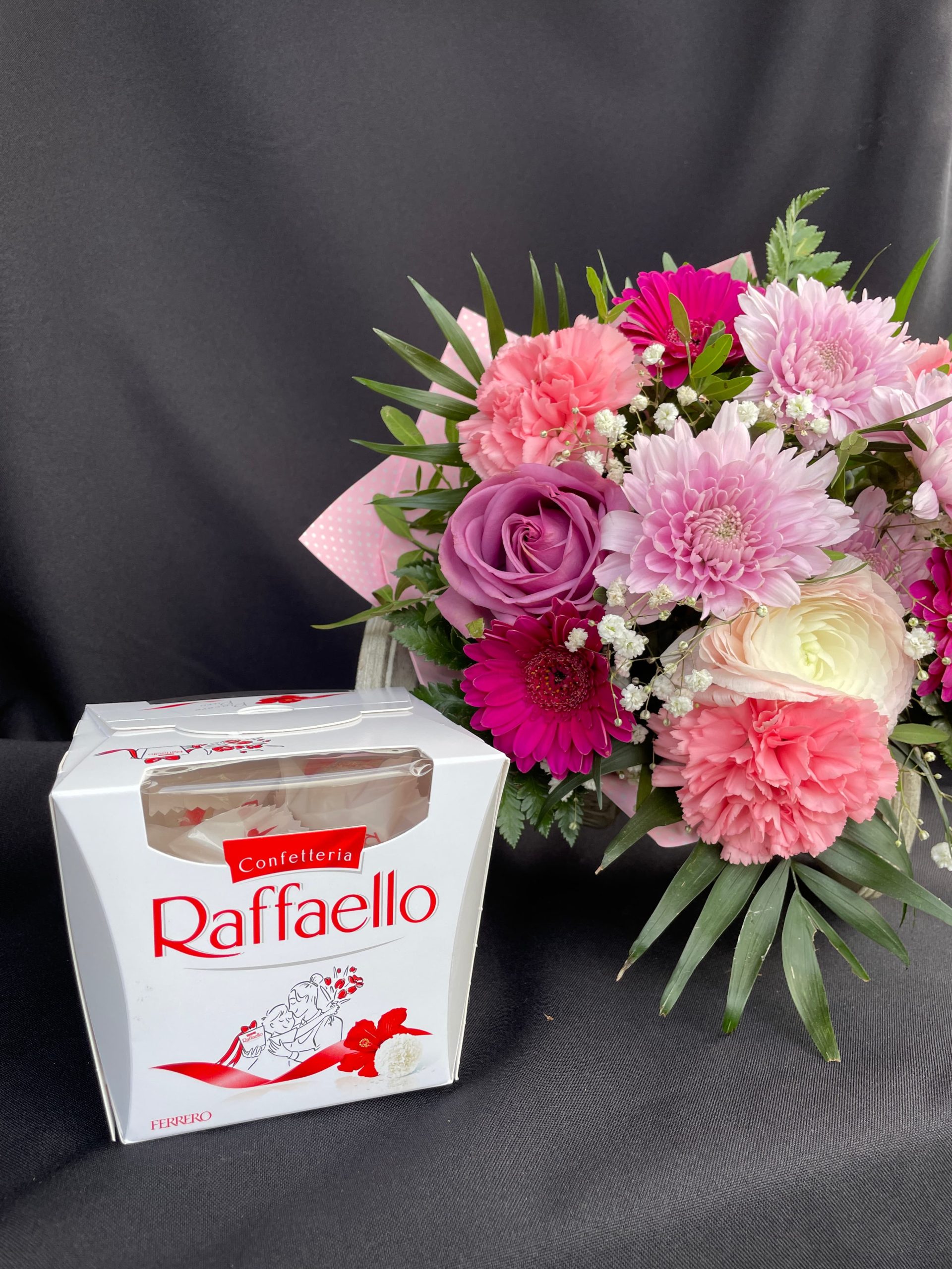 Különösen Anyák napjára ajánljuk ezt a csodás csomagot, hiszen mi lehetne szebb ajándék, mint egy gondosan összeállított, pasztell árnyalatokban pompázó virágcsokor és a finom Raffaello desszert? De a csomag nemcsak erre az alkalomra ideális: születésnapra, névnapra, évfordulóra vagy akár egy spontán „csak úgy” meglepetésként is megállja a helyét.