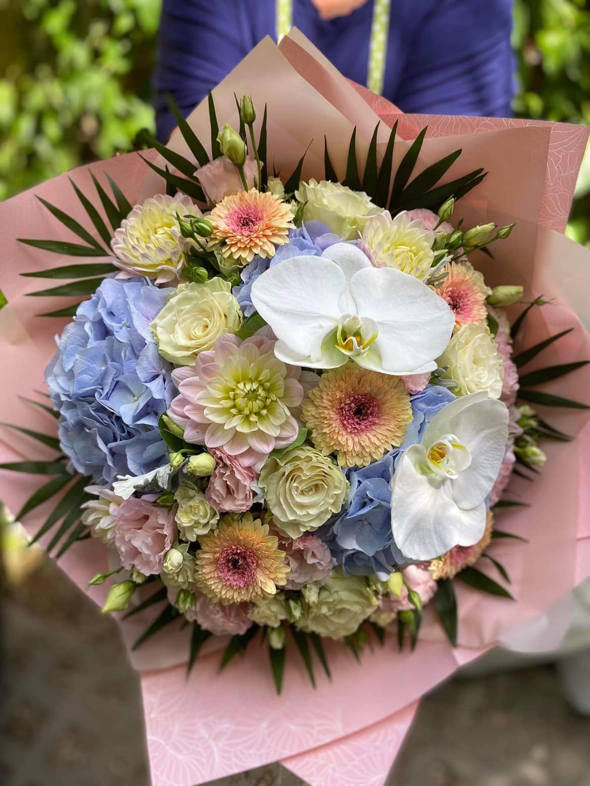 A Lepkék tánca virágcsokor könnyed pasztell árnyalataival és elegáns orchideáival finom harmóniát és nyugalmat sugároz. Egy igazán különleges csokor, amely kifinomult ízlésről és figyelmességről mesél. A képen az Extra méretet láthatod!
