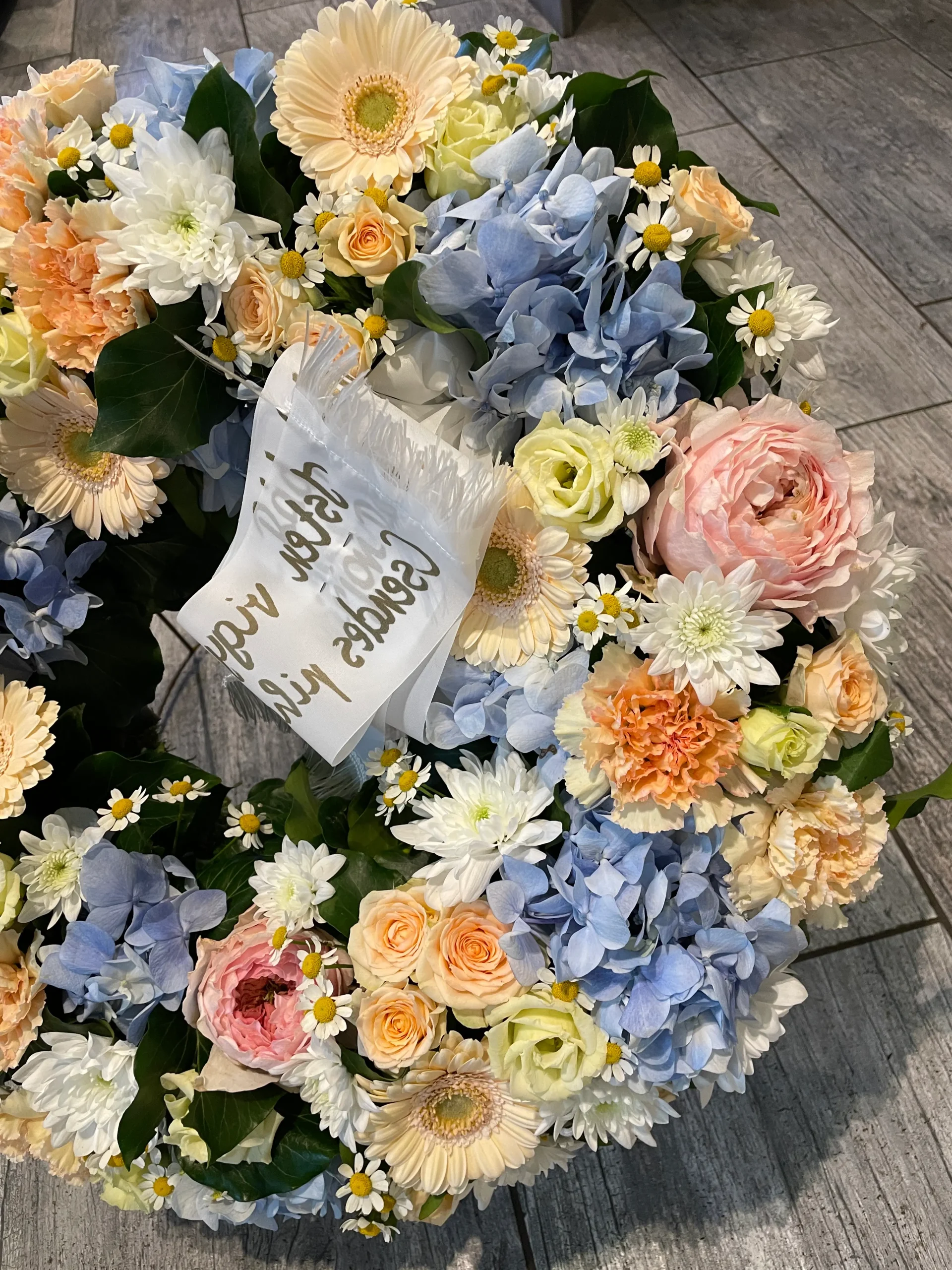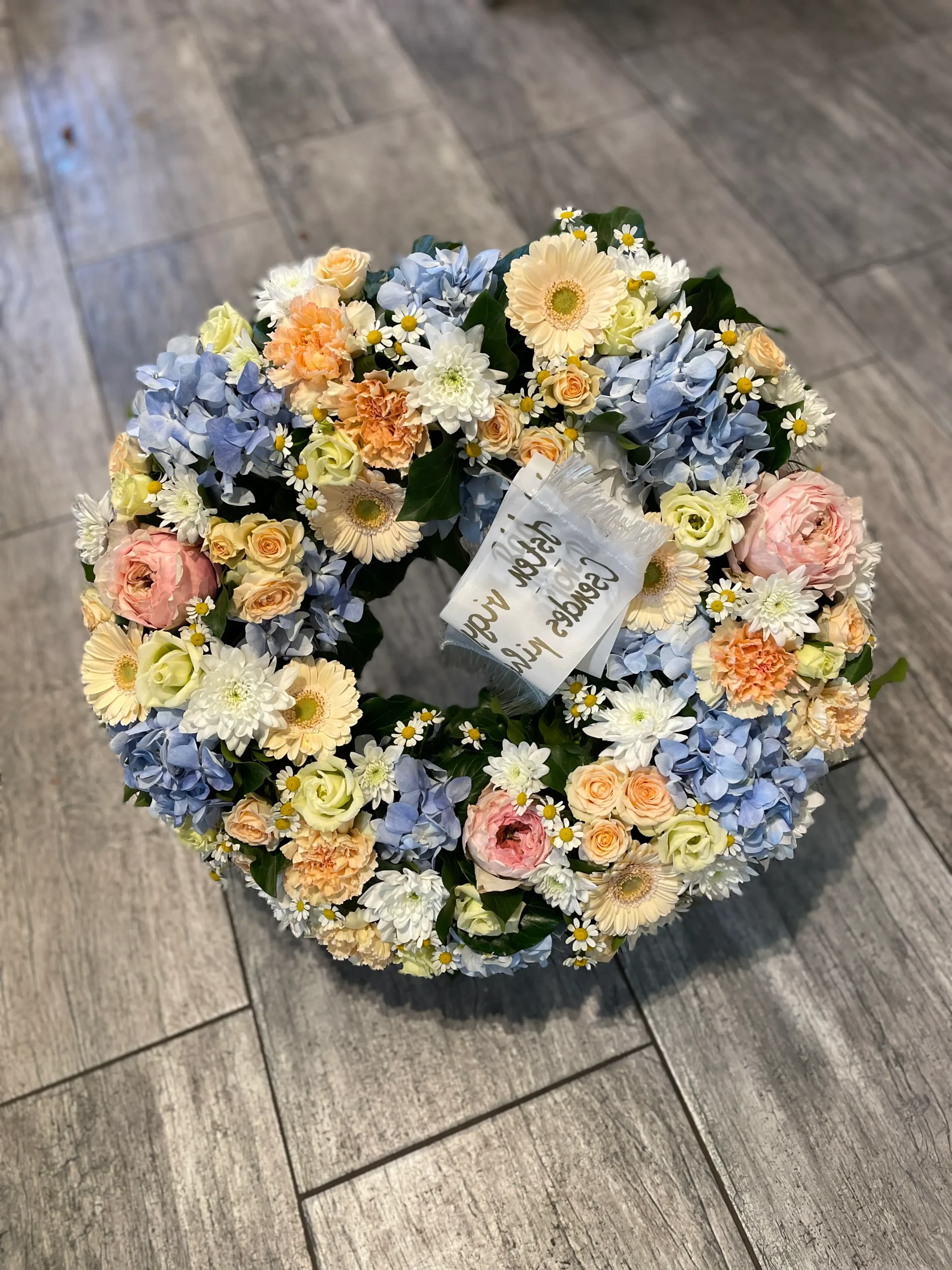 A Nyugodj békében – görög koszorú a szeretet, a tisztelet és az örök emlékezés jelképe. Segít méltón kifejezni érzéseidet a búcsú pillanataiban, szívhez szóló és méltóságteljes formában.