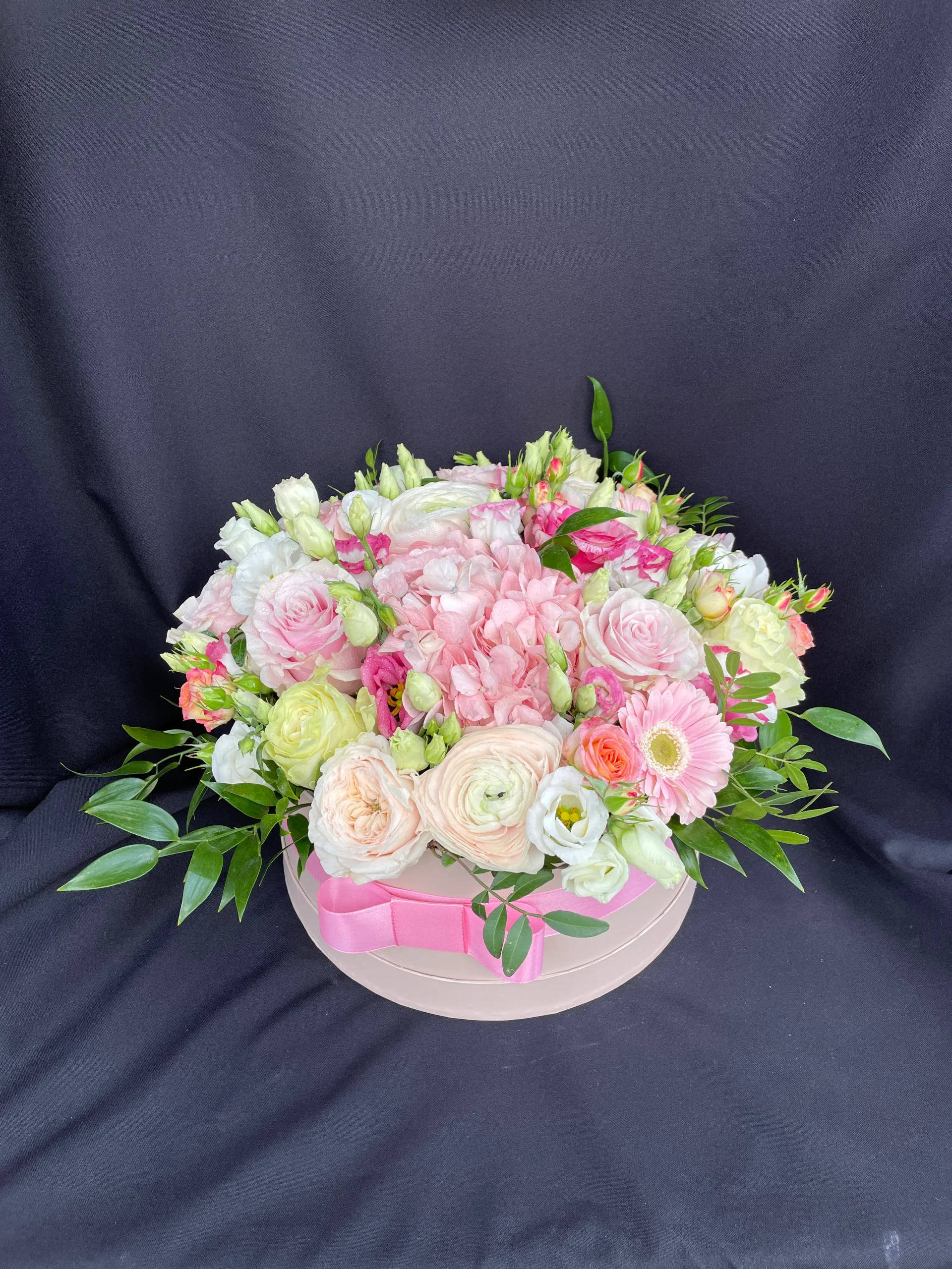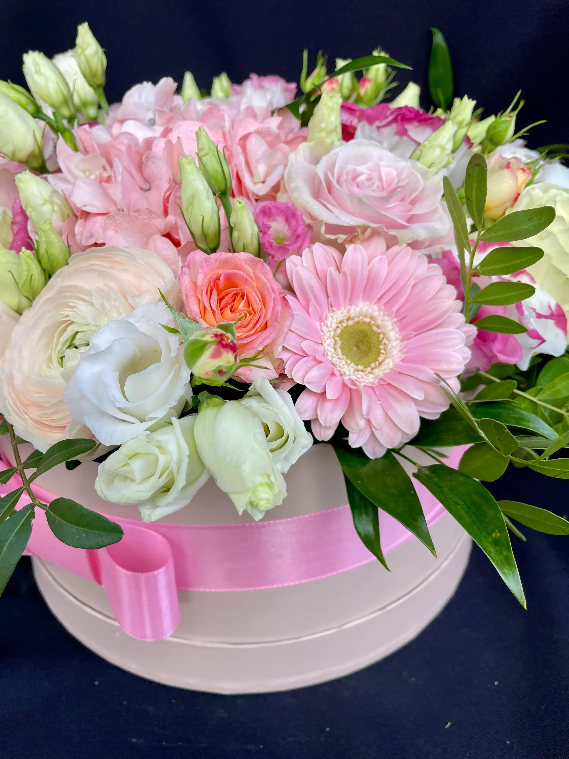 A Romantikus rózsaszín virágbox a kifinomult elegancia megtestesítője. Finom rózsaszín, fehér és krémszínű virágok lágy harmóniáját alkottuk meg ebben a virágboxban. Minden szál friss, gondosan elrendezett, hogy a virágküldés örömteli meglepetéssé váljon.