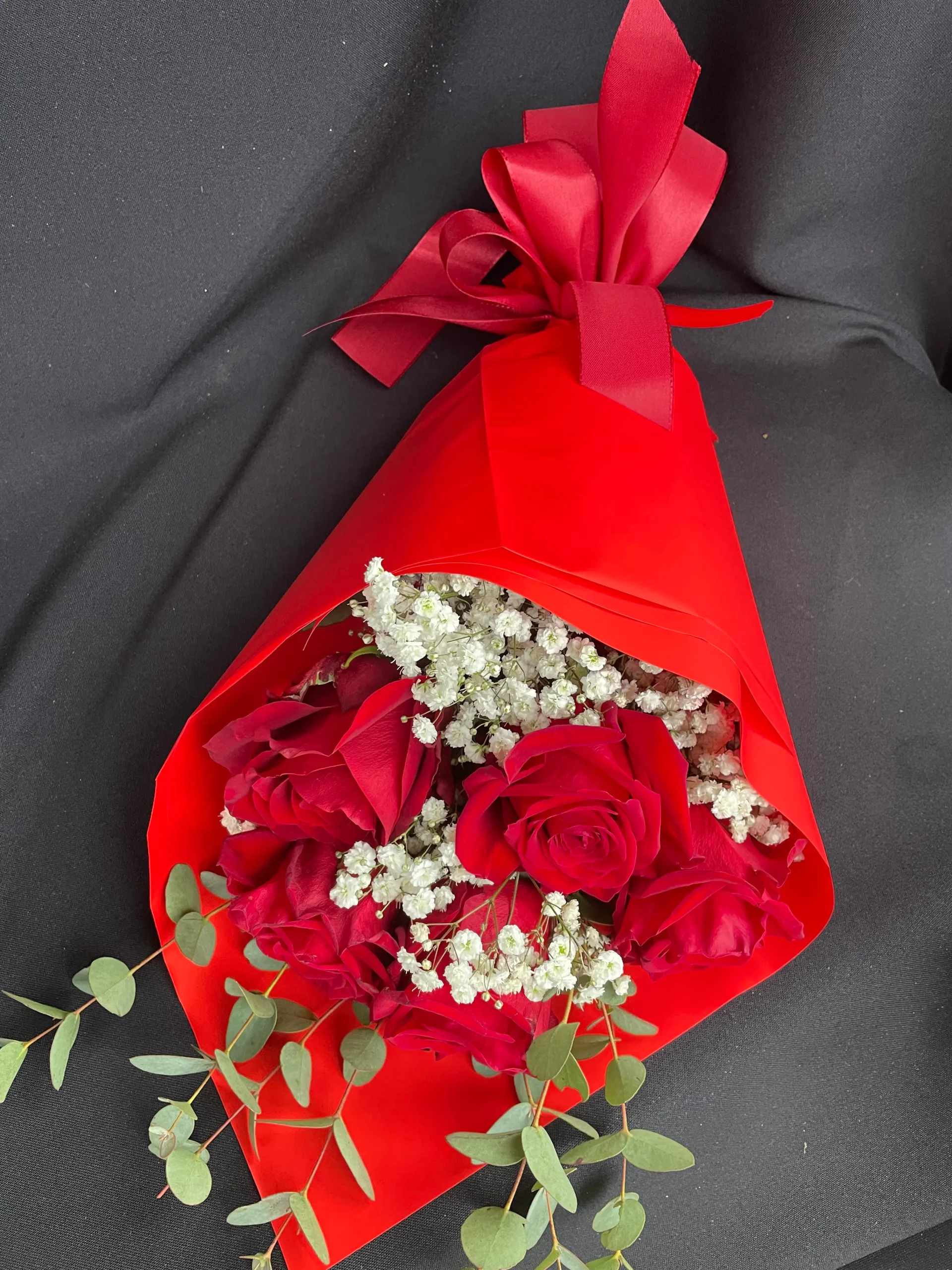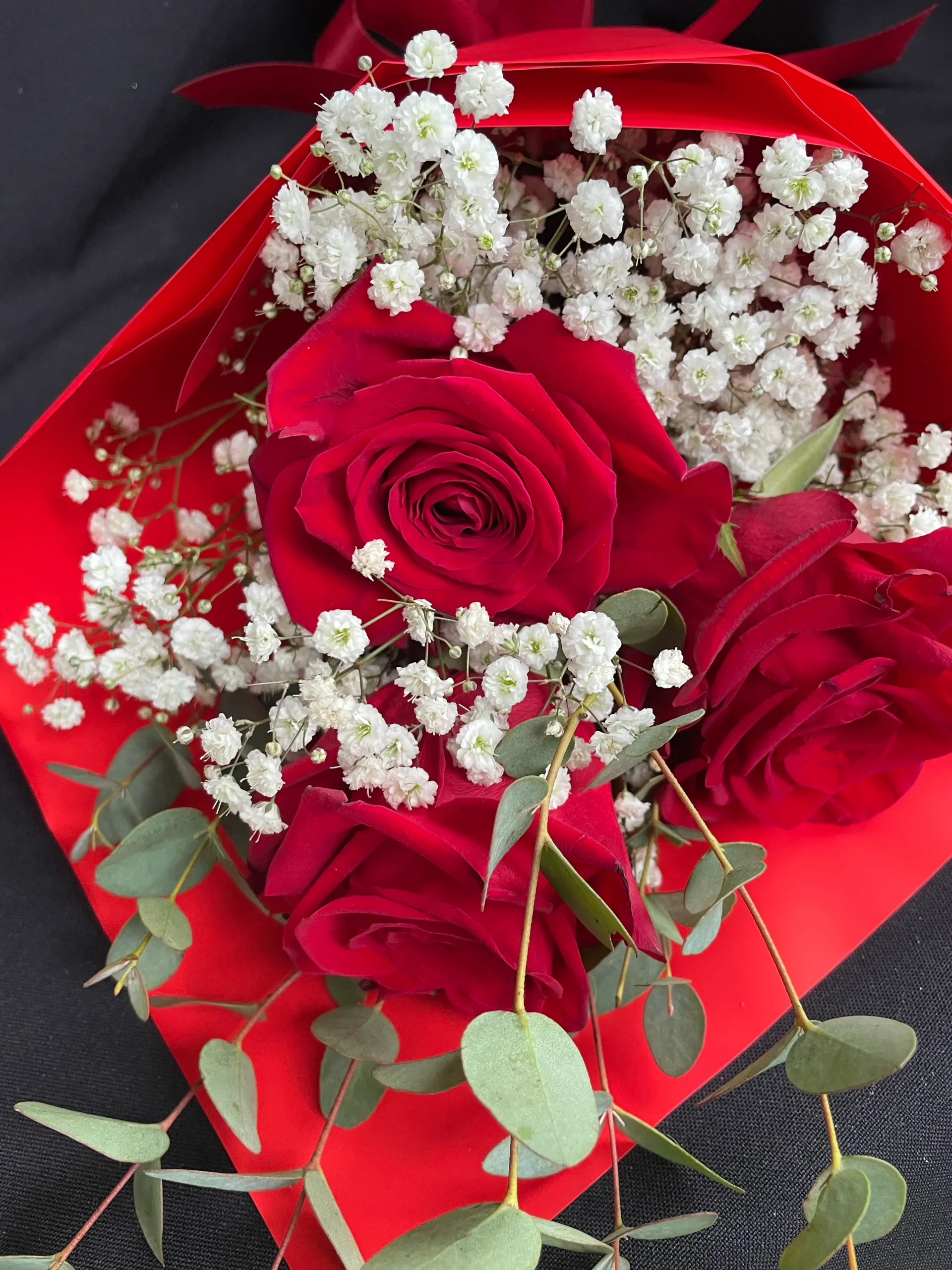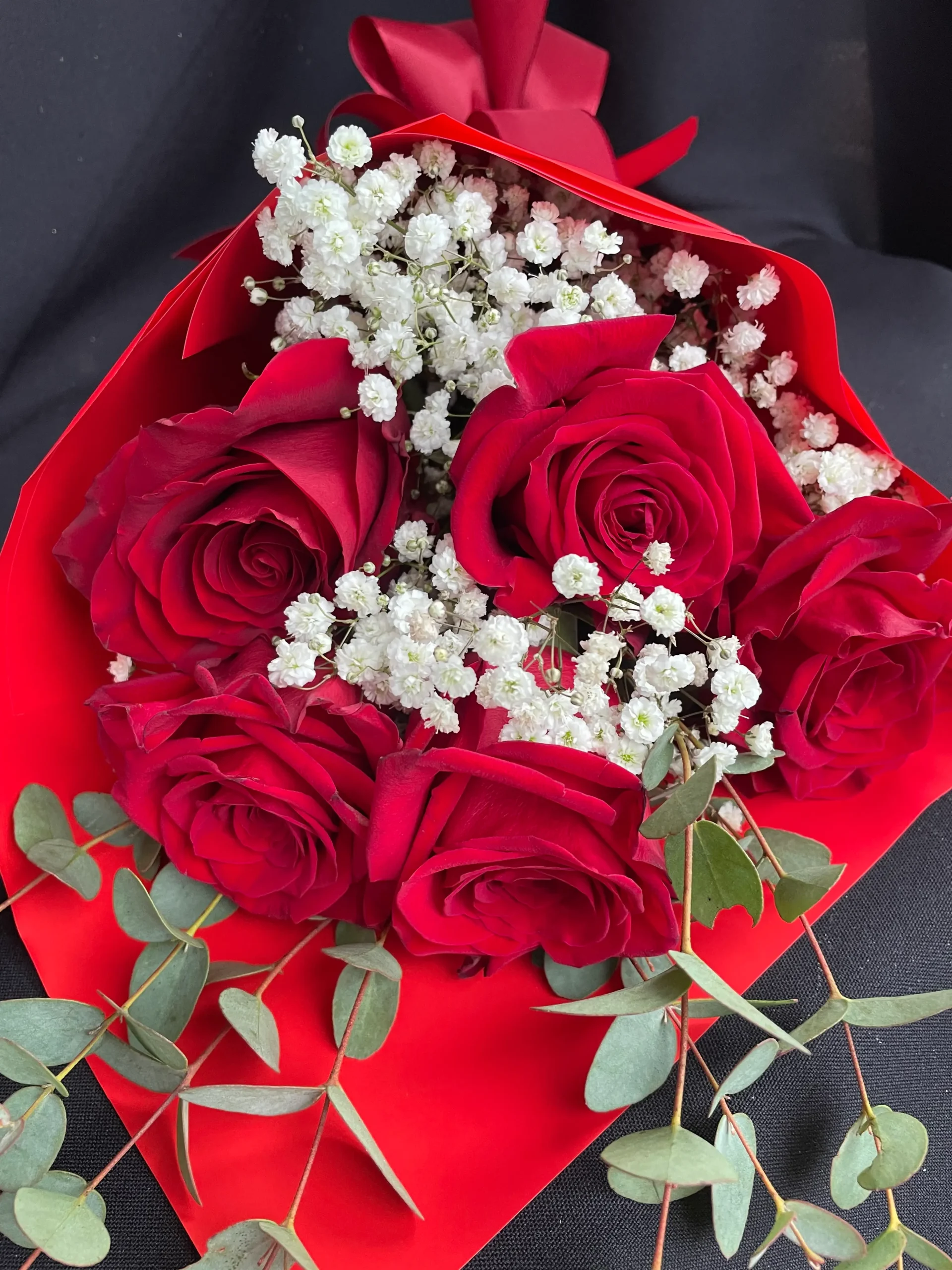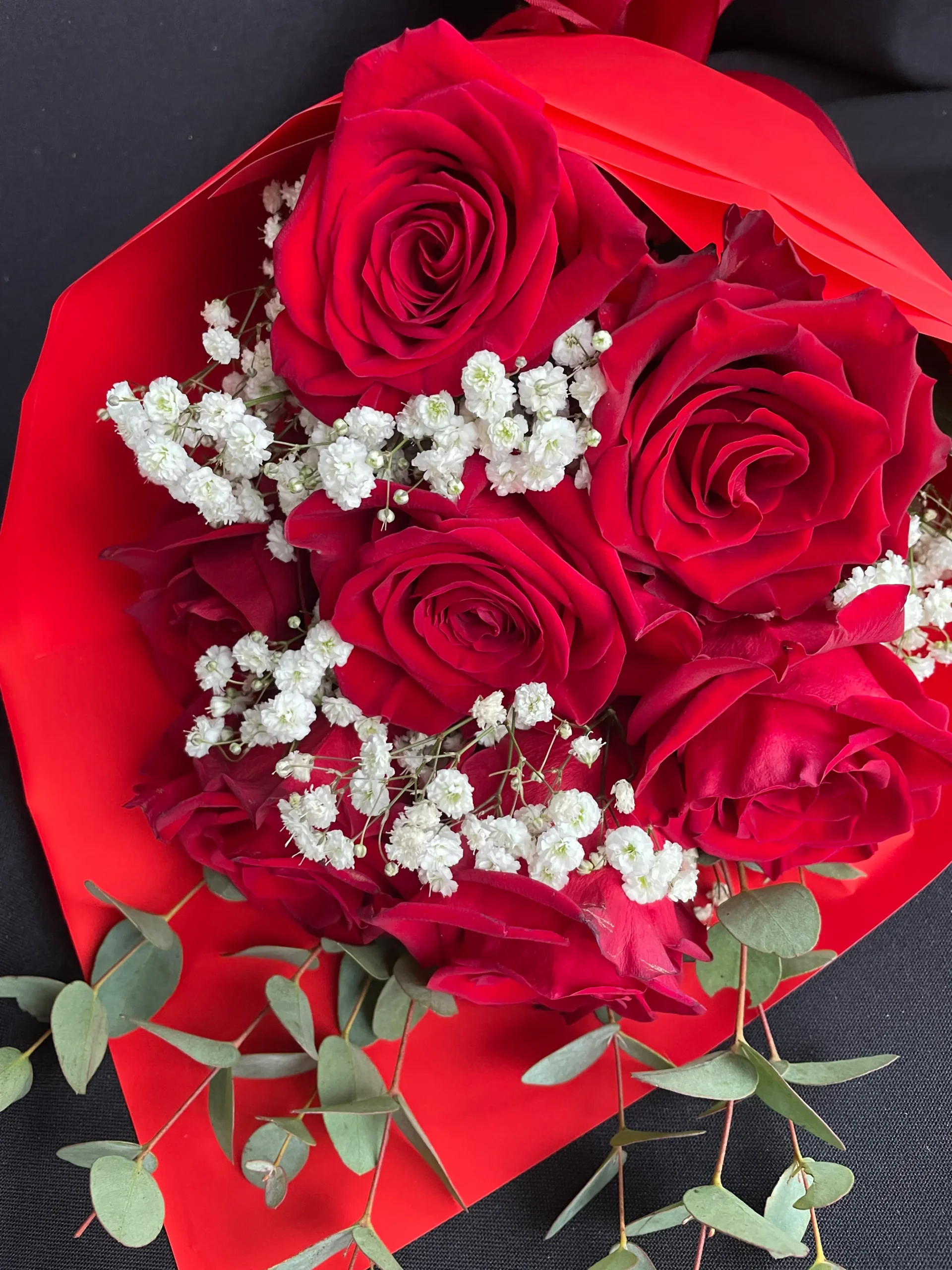 A Szívből Szeretlek rózsacsokor a szerelem időtlen szimbóluma. A szenvedélyes vörös rózsák, a romantikus fehér fátyolvirágok és a természetes eukaliptusz elegáns kombinációja minden szívet megdobogtat.